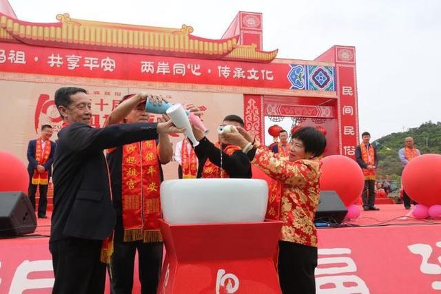 開幕式上,中華媽祖文化交流協(xié)會作交流發(fā)言,并舉行兩岸同心媽祖慈善基金授牌儀式。臺灣、福建、蒼南、洞頭等四地代表開展“四海安瀾瓶”匯水儀式,把家鄉(xiāng)的水共同匯入瓶內(nèi),寓意中華民族同祖同宗、同根同源。