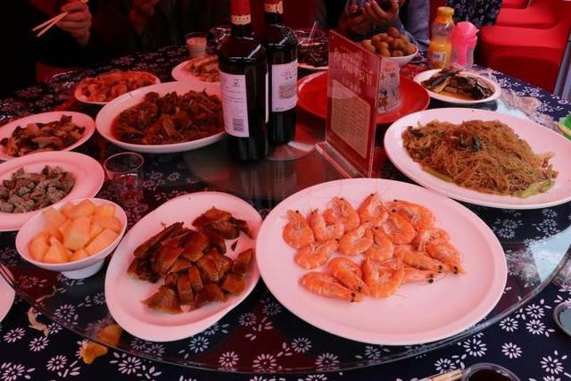 在媽祖平安宴現(xiàn)場,150桌紅色宴桌分3排整齊排開綿延不絕。全國各地的賓客們一邊品味洞頭地道的美食,一邊熱切交流著媽祖文化、漁家文化,喜樂融融。