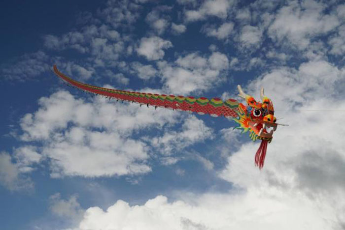 據(jù)魏國秋介紹,這只龍形風(fēng)箏由70節(jié)組成,歷時三個月才制作完成。