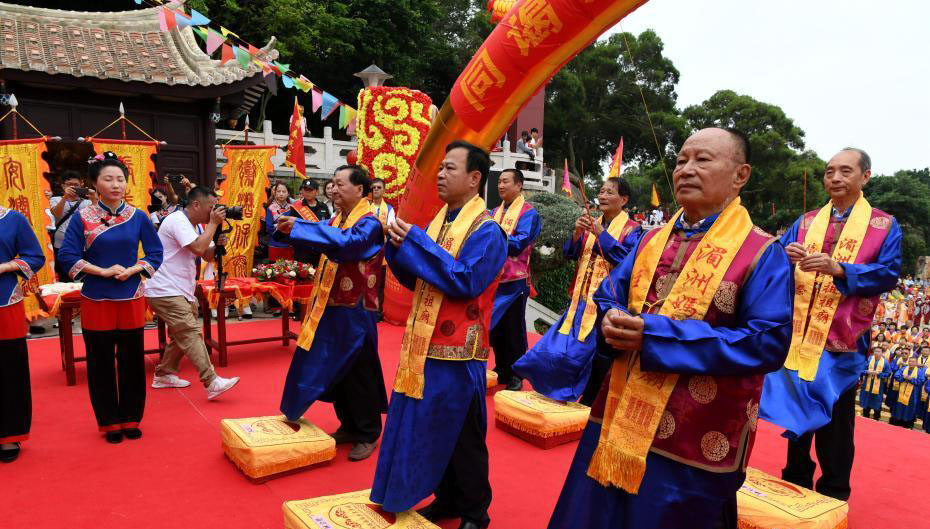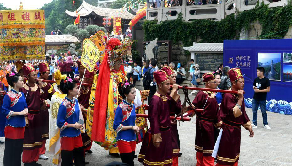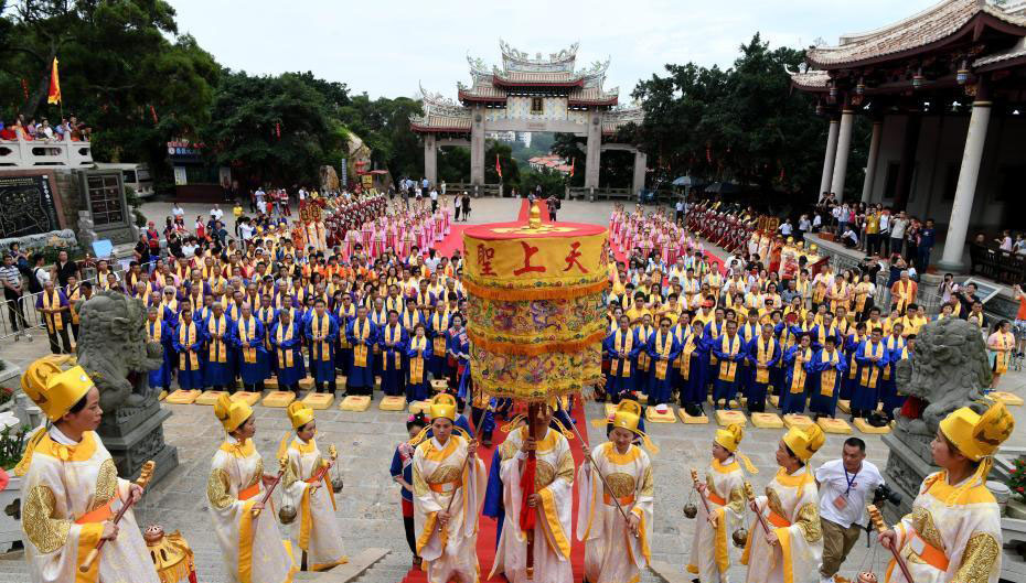 6月9日,來自臺灣的38家媽祖宮廟信眾代表與湄洲島媽祖信眾一起在福建省湄洲島媽祖祖廟共謁媽祖。當(dāng)日,臺灣漁船直航湄洲朝拜媽祖30周年紀(jì)念活動在湄洲島舉行。