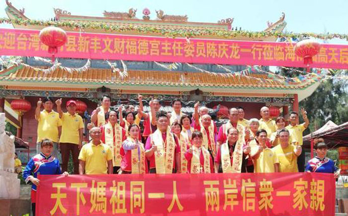 “天下媽祖,祖在福建湄洲”,源于中國福建湄洲的媽祖文化是重要的旅游文化資源,是溝通兩岸同胞的重要精神橋梁。近日,我省臨高天后宮、臨高媽祖文化交流協(xié)會與臺灣新豐文財福德宮、綠景文財福德宮開展民間媽祖文化友好交流,福德宮十七名臺灣同胞近日分別走訪臨高天后宮、調(diào)樓天后宮、黃龍?zhí)旌髮m、武蓮天后宮、文潭天后宮,與當(dāng)?shù)貪O民群眾展開友好交流,以兩岸同胞共有的媽祖文化深耕民間友好交流,促進(jìn)民心相通,增強(qiáng)兩岸同胞血濃于水的精神紐帶作用。