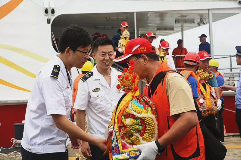 “五年前,我們是從后渚港上岸的;今天的船只直通到泉州石井對臺客運碼頭,感覺很不一樣?!弊婕驳呐旌旌髮m主委楊國夫說。