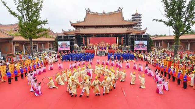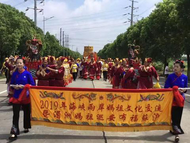 9月7日上午8時,由中華媽祖文化交流協(xié)會指導(dǎo),福建莆田湄洲媽祖祖廟、臺灣鹿港天后宮主辦的“2019年海峽兩岸媽祖文化交流暨兩岸媽祖巡安布福蘇、滬活動”在江蘇昆山慧聚天后宮啟幕。中華媽祖文化交流協(xié)會常務(wù)副會長俞建忠,中華媽祖文化交流協(xié)會副會長、湄洲媽祖祖廟董事長林金贊,中華媽祖文化交流協(xié)會副會長、臺灣中華媽祖聯(lián)誼會會長、臺灣鹿港天后宮主任委員張偉東,全國臺灣同胞投資企業(yè)聯(lián)誼會常務(wù)副會長孫德聰?shù)燃钨e與兩岸媽祖文化機構(gòu)代表、知名企業(yè)家代表共襄盛會。