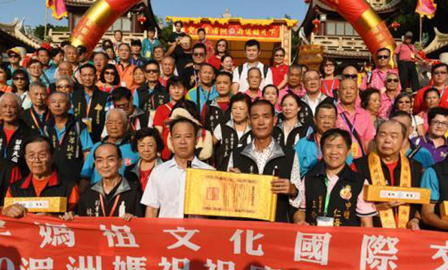 據(jù)悉,臺灣寰宇媽祖文化國際交流協(xié)會由北港朝天宮發(fā)起建立。北港朝天宮位于臺灣云林縣北港鎮(zhèn),1694年,臨濟宗樹壁禪師從湄洲島請了一尊媽祖來到北港,6年后蓋起一座廟,即北港朝天宮的前身。北港朝天宮是臺灣媽祖信仰中心之一,也是參與兩岸交流最早、最廣的媽祖廟之一。值得一提的是,臺灣擁有一座和湄洲完全一樣的花崗石媽祖神像,其所在地便是北港,兩座神像隔海遙望,寓意綿長。
