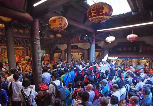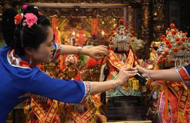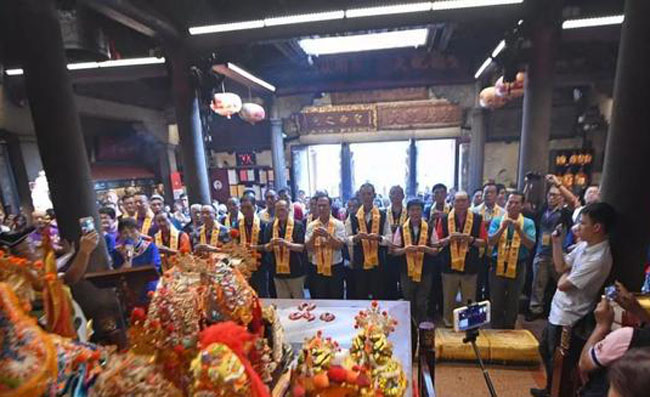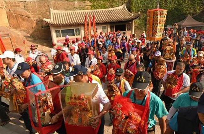 下午三點,蔡詠锝董事長率進(jìn)香團一行恭抬十?dāng)?shù)尊分靈媽祖及神尊抵達(dá)湄洲碼頭,林金贊董事長等董事會成員在碼頭以鼓樂隊為陣頭迎接遠(yuǎn)道而來的臺灣同胞。隨后,林金贊董事長與進(jìn)香團一道踩街至祖廟天后宮,并陪同北港朝天宮、宜蘭大南澳震安宮、斗六新興宮、苗栗天后宮等23家宮廟代表向媽祖行莊嚴(yán)的三獻(xiàn)禮。