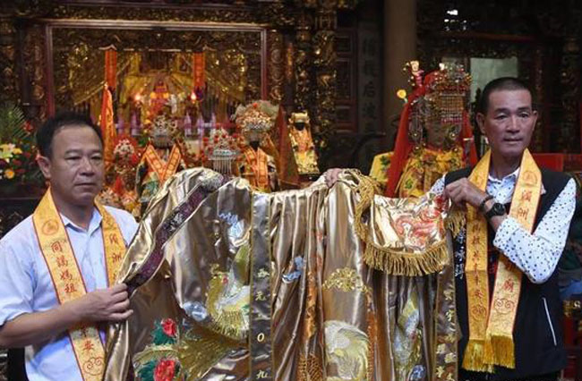 禮畢,蔡詠锝董事長代表臺灣媽祖文化國際交流協(xié)會向林金贊董事長頒發(fā)榮譽理事長聘書并贈送鳳袍。隨后,林金贊董事長與各宮廟代表互贈紀(jì)念品并合影留念,定格這個值得紀(jì)念的時刻。