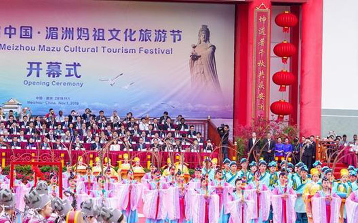 2019年11月1日上午,一場(chǎng)氣勢(shì)恢宏的媽祖祭祀大典在湄洲島天后廣場(chǎng)隆重舉行。當(dāng)天,第二十一屆中國(guó)·湄洲媽祖文化旅游節(jié)在這里舉行開幕儀式。來(lái)自全球42個(gè)國(guó)家和地區(qū)的專家學(xué)者、知名僑領(lǐng)、海外人士、世界各地莆田同鄉(xiāng)會(huì)、商會(huì)代表,以及來(lái)自世界各地、各省份的媽祖文化機(jī)構(gòu)代表等歡聚一堂,同謁媽祖,共享平安。