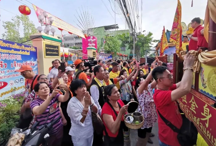 11月13日至19日,湄洲媽祖先后駐蹕泰國(guó)泉州晉江聯(lián)合總會(huì)、泰國(guó)南瑤宮、泰國(guó)林氏宗親總會(huì)等場(chǎng)所,開展繞境巡安、媽祖祭典、文藝演出等系列活動(dòng),所到之處,人潮涌動(dòng)、虔誠(chéng)朝拜。泰國(guó)警方派出警力全程為湄洲媽祖巡安開道護(hù)航。據(jù)不完全統(tǒng)計(jì),當(dāng)?shù)丶把赝境?、跟隨民眾50多萬人次。人民日?qǐng)?bào)、新華社、中新社、法新社、新浪網(wǎng)和泰國(guó)中華日?qǐng)?bào)、星暹日?qǐng)?bào)等媒體紛紛報(bào)道活動(dòng)盛況;話題2次上微博熱搜榜,參與人數(shù)近4億人次;抖音熱點(diǎn)榜升至第2名。